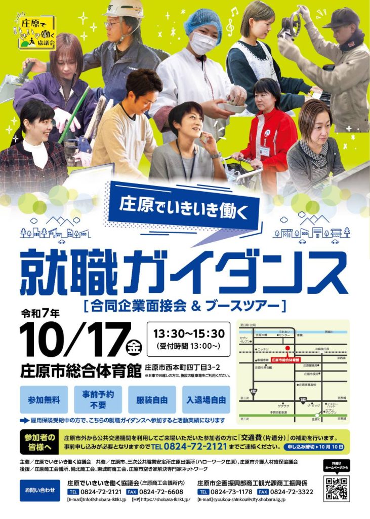 令和7年度「庄原でいきいき働く就職ガイダンス(合同企業面接会)」を開催します!!